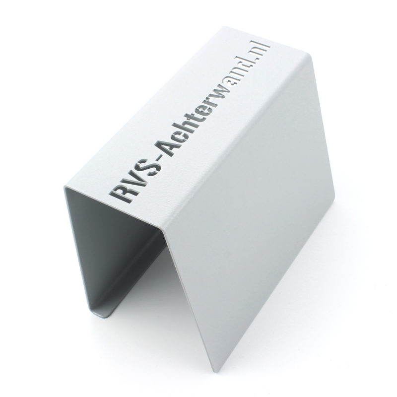 De keukenachterwand wordt voorzien van een duurzame poedercoating in kleur. Eerst wordt je achterwand op maat gemaakt met behulp van een lasersnijder. Vervolgens wordt de poedercoating aangebracht en uitgehard in een oven op 180 graden.
