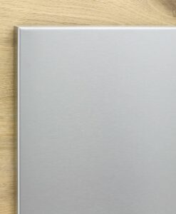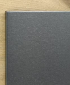 Wij leveren onze gezette achterwanden in verschillende dikte’s. Een 7, 10, 13 en 19 mm dikke variant zijn standaard, maar elke andere dikte is ook mogelijk vanaf 7mm. De 10 mm variant is de standaard, deze is opgebouwd uit een plaat van 9 mm vochtwerend mdf en een 1 mm dikke rvs plaat. De 19 mm variant bestaat uit een 18 mm vochtwernd mdf plaat en en een 1 mm dikke rvs plaat.