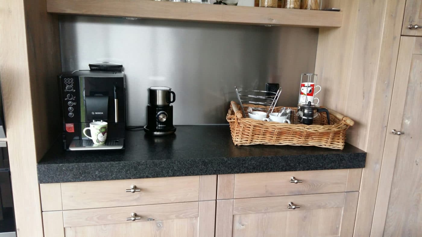 Onze achterwanden kunnen op verschillende muren gemonteerd worden. Is uw muur vlak dan kiest u voor een rvs plaat. Zijn er oneffenheden op uw muur aanwezig dan raden wij aan om een gezette achterwand te kiezen. Een gezette achterwand wordt op hout gemonteerd. Het hout vangt dan de oneffenheden in uw muur op. Wij vouwen de randen van een gezette achterwand om zodat deze mooi afgewerkt is en over het hout heen valt.
