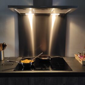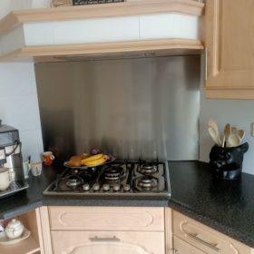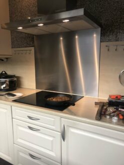 RVS achterwanden op maat / anti fingerprint gekocht voor achter de kookplaat en spoelbak. Zeer snelle levering en perfect op maat.