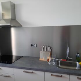RVS achterwand op maat en op hout. Vlotte levering. Zorgvuldig verpakt. Mooi materiaal. Zou jullie zeker aanbevelen bij anderen.