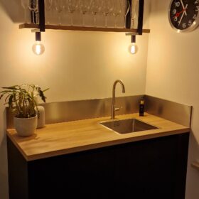 Geborsteld rvs achterwand met hout aan d3 achterzijde besteld en opgehaald. Uitstekend op maat gemaakt. Geplaatst met montagekit.
