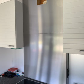 Perfect op maat gemaakt, het was even kiele kiele i.v.m. nagenoeg geen speling maar we wouden een perfecte aansluiting en dat is gelukt dankzij de geleverde kwaliteit van RVS-Achterwand.nl!