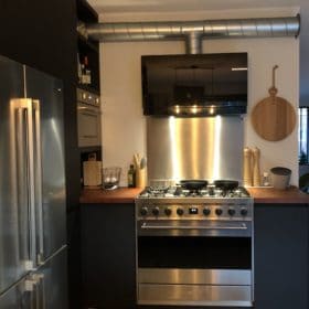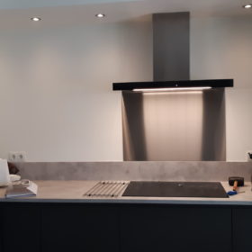 Het resultaat is verbluffend. Naast de precieze maatvoering is ook de afwerking heel mooi. Ik ben blij met de keuze voor deze rvs-achterwand.