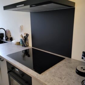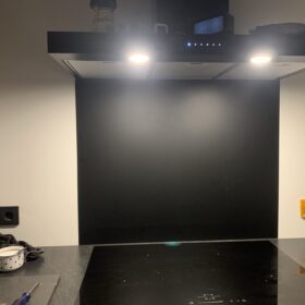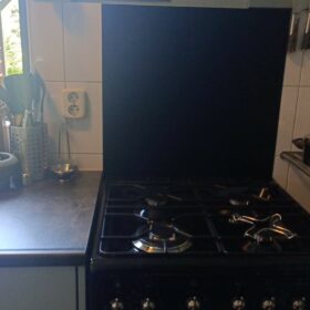 Matzwarte achterwand met anti-fingerprint coating voor onze keuken laten maken. Deze afgehaald bij de werkplaats in Pijnacker. Zeer mooi eindresultaat, we zijn erg tevreden!