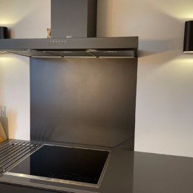 Bestel je keukenachterwand in Ral 9005, de donkerste zwarttint in ons assortiment. Als basis nemen wij rvs, dit geeft samen met een duurzame poedercoating met een lichte textuur er het beste resultaat.