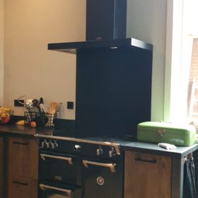 Keuken achterwand zwart – Ral 9005 – Gitzwart Geplaatst, vergeet niet dat de houten plaat nog los is dus deze ook enen lijmen bij plaatsen.. verder top!