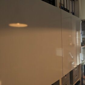Het magnetisch whiteboard op maat kwam netjes en binnen 2 dagen aan. De maatvoering klopte nauwkeurig en het ziet er mooi en straks uit. Veel mooier dan de standaard whiteboards en dat voor een prima prijs! We hebben de plaat bevestigd met magnetische, schroefbare houders.