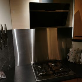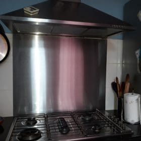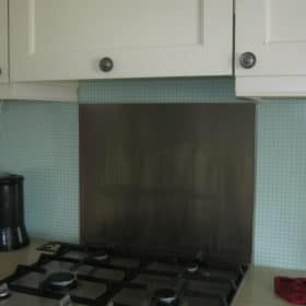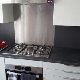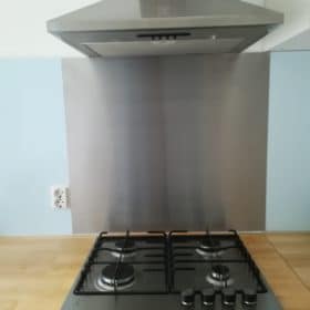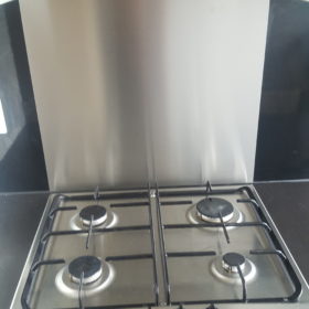 Plaat op maat voor achter gaskookplaat. Snelle levering en perfect afgewerkt. Aanrader.