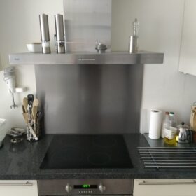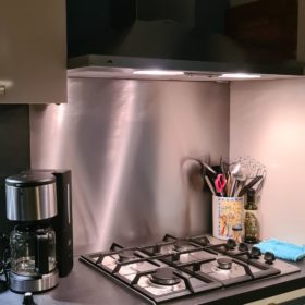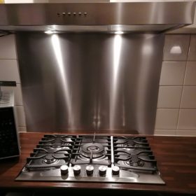 RVS achterwand – supermooie achterwand, geborsteld en inderdaad anti-fingerprint. Een fluitje van een cent om deze te monteren, staat prachtig en een aanwinst in onze keuken!