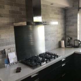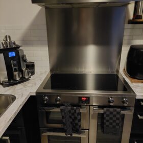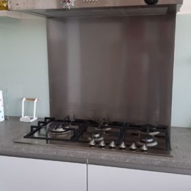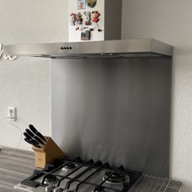 Een rvs achterwand besteld van 90×75 cm. Supersnel geleverd met bijbehorend bevestigingsmateriaal en direct geplaatst in de nieuwe keuken. Zeer tevreden !